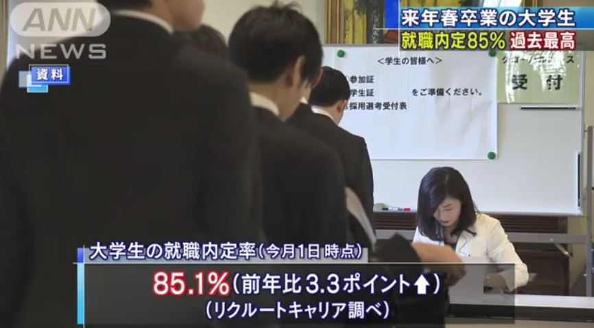 这几年日本毕业生的就业率居高不下,几乎达到毕业后人人都能找到工作的“完全就业”时代。